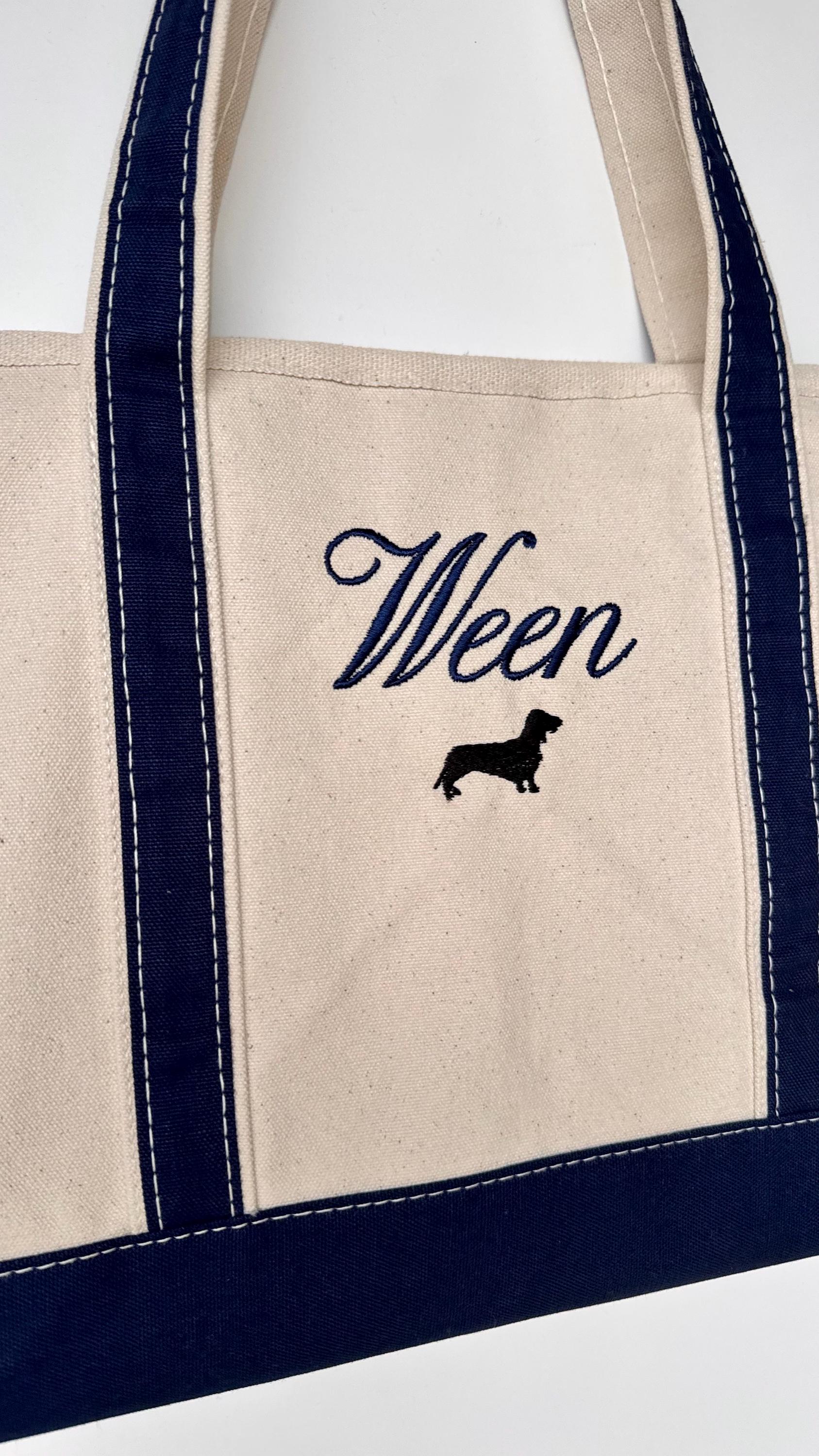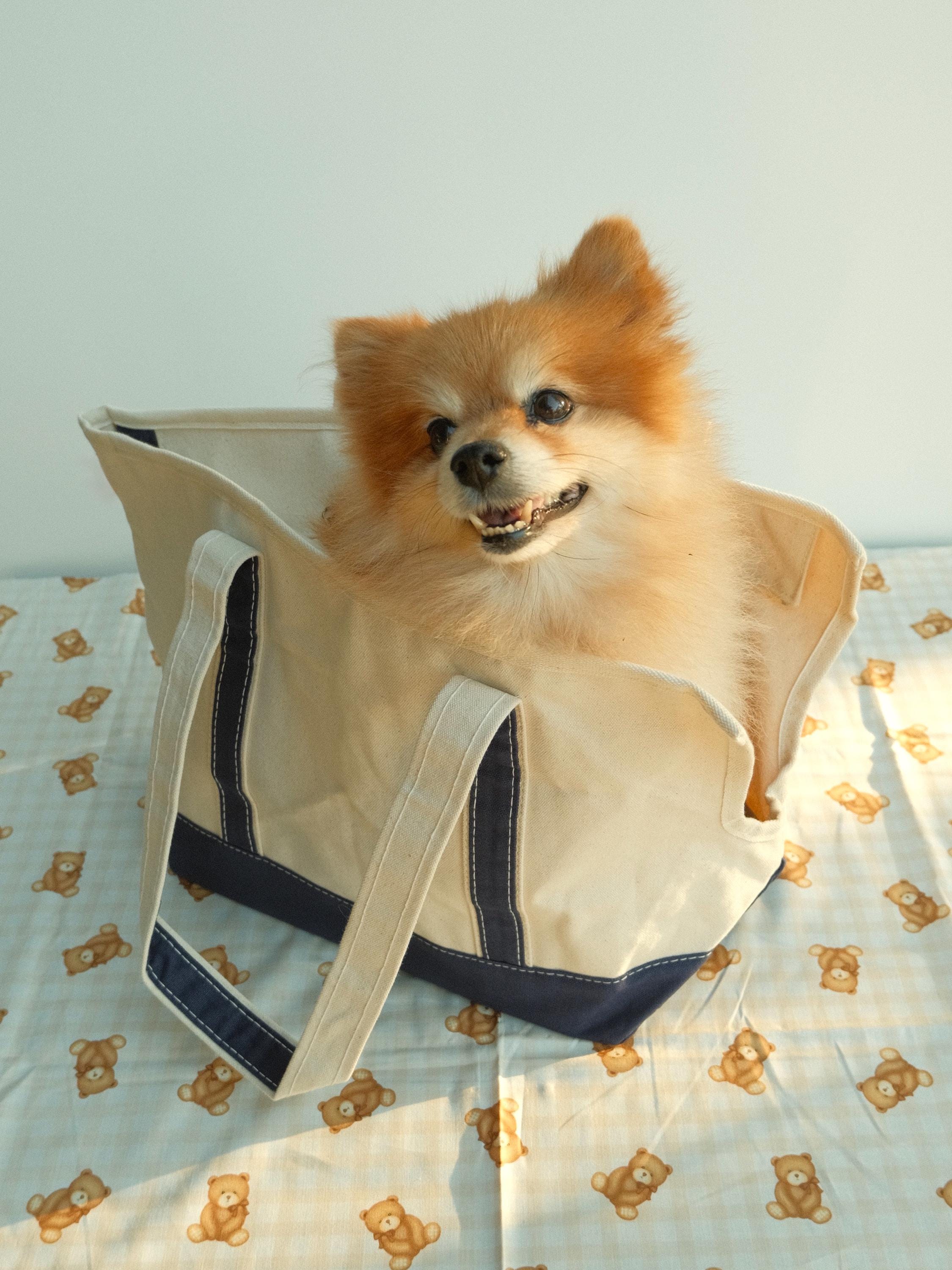 🐶12" H X 14" W X 8" D 🐶2.00 lbs 🐶15 oz Canvas, 10 oz trim 🐶Top zip closure with opening for pet's comfort. 🐶Contrasting color handles with a 9" drop. 🐶Inner pet strap for added safety.